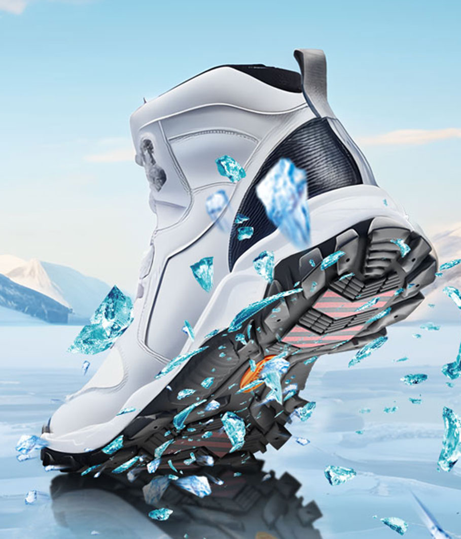 鑫銘冰面止滑技術(shù)Ice Brake,鞋底冰面上打滑,嚴(yán)重威脅穿著者的安全性和影響便利性。為了這一問(wèn)題,鑫銘研制出絕佳的解決方案:Ice Brake冰面止滑技術(shù)。